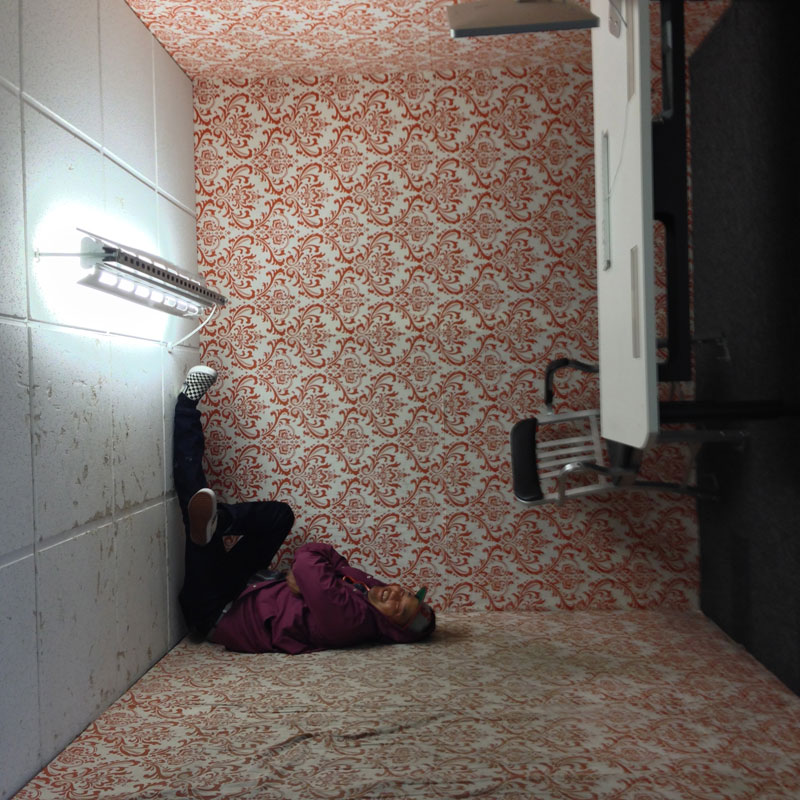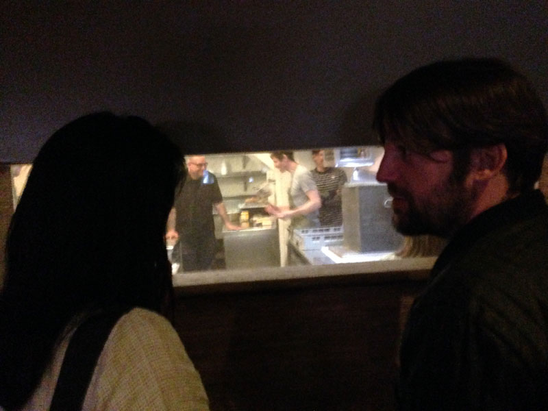Chef Rene peeking into the unsuspecting kitchen before his surprise visit