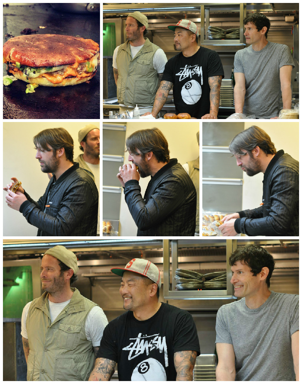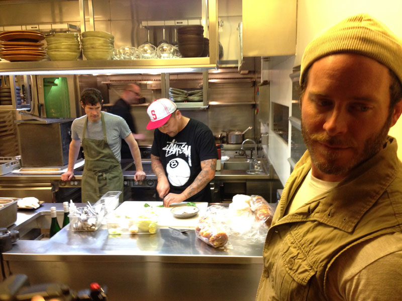 Here's a little collage we put together from last week's impromptu menu R&D session, when world renowned chef Rene Redzepi stopped by the kitchen for a taste of Loco'l. That's Chad Robertson of Tartine in the white tee, he made the amazing bread.