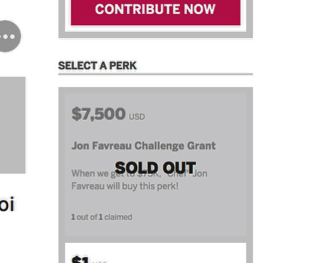 We made some huge progress in the last few days! The Jon Favreau challenge was met last Saturday, and we all got to see Jon deposit his $7,500 grant as promised! We see you guys, our amazing backers, sharing the good word, and we know that's just the tip of the sharing iceberg! Much gratitude from us, seriously.